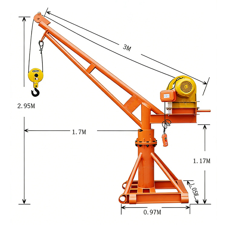 Kiinan johtava valmistaja Hebei Baiyi Lifting Machinery Equipment Co., Ltd. räätälöi erilaisia ​​suurikokoisia nostureita. Tämä 2000kg ulkonosturi soveltuu rakentamiseen, suunnitteluun, suuriin konepajoihin jne. Se toimii yleensä 380 V jännitteellä ja voidaan varustaa yksilinjaisella sähkövinssillä ja suuritehoisella sähkönosturilla, mikä voi parantaa noston vakautta ja turvallisuutta.