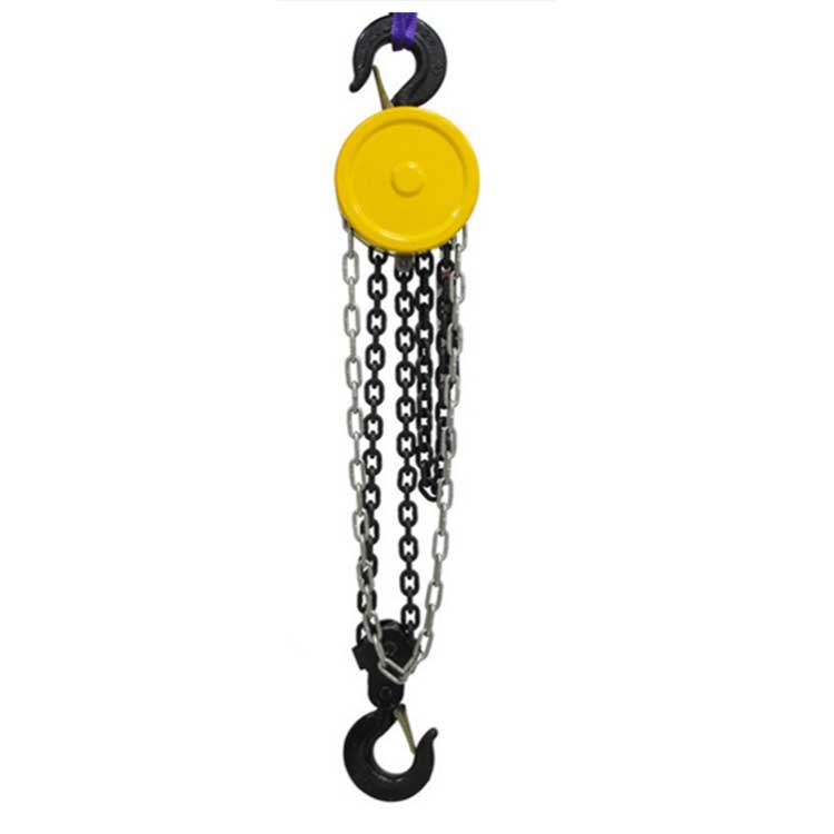 2. Noudata HSZ 3T -ketjunostimen käytön aikana asianmukaisia ​​nostotoimenpiteitä. Kun nostat ja lasket, vedä käsiketjua hitaasti varmistaaksesi, että kuorma nousee tasaisesti. Älä vedä kuormaa vinosti tai sivuttain. Säilytä tasainen nopeus noston ja laskemisen aikana. Älä anna henkilökunnan viipyä kuorman alla. Älä jätä ilmaan roikkuvia kuormia ilman valvontaa pitkiksi ajoiksi.