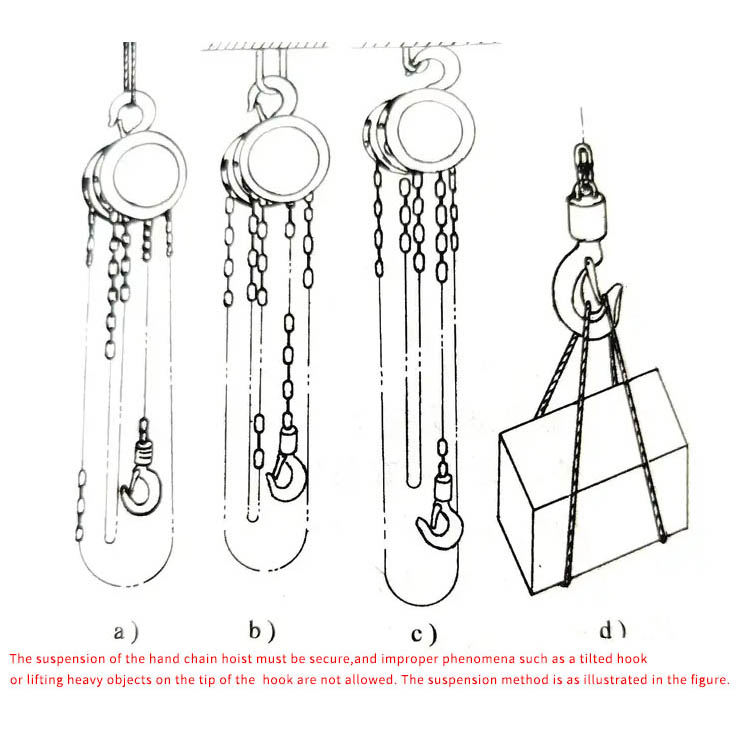 Erityisvaroitus: Jos ketju juuttuu, jarrut katkeavat tai ilmenee muita poikkeavuuksia, lopeta nostimen käyttö välittömästi ja anna ammattilaisen tarkastaa se. Turvallisuus on ensiarvoisen tärkeää; asianmukainen toiminta suojaa sekä laitteita että, mikä tärkeintä, ihmishenkiä.