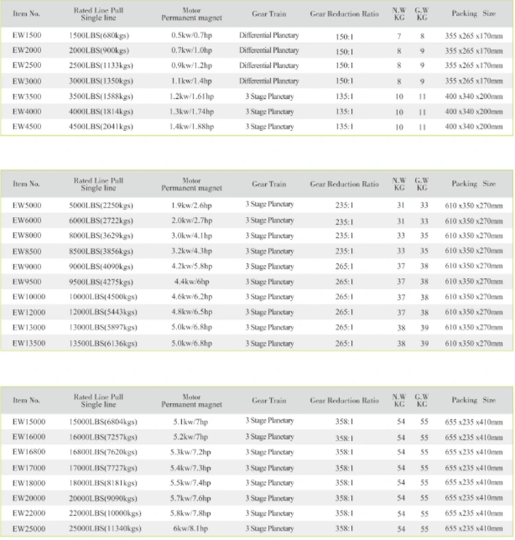 1. Se sopii 12/24V-sarjan kierretyn moottorin kanssa, tarjoaa vahvan jännityksen ja nopean lineaarisen nopeuden ja täyttää erilaisten raskaiden olosuhteiden vaatimukset.